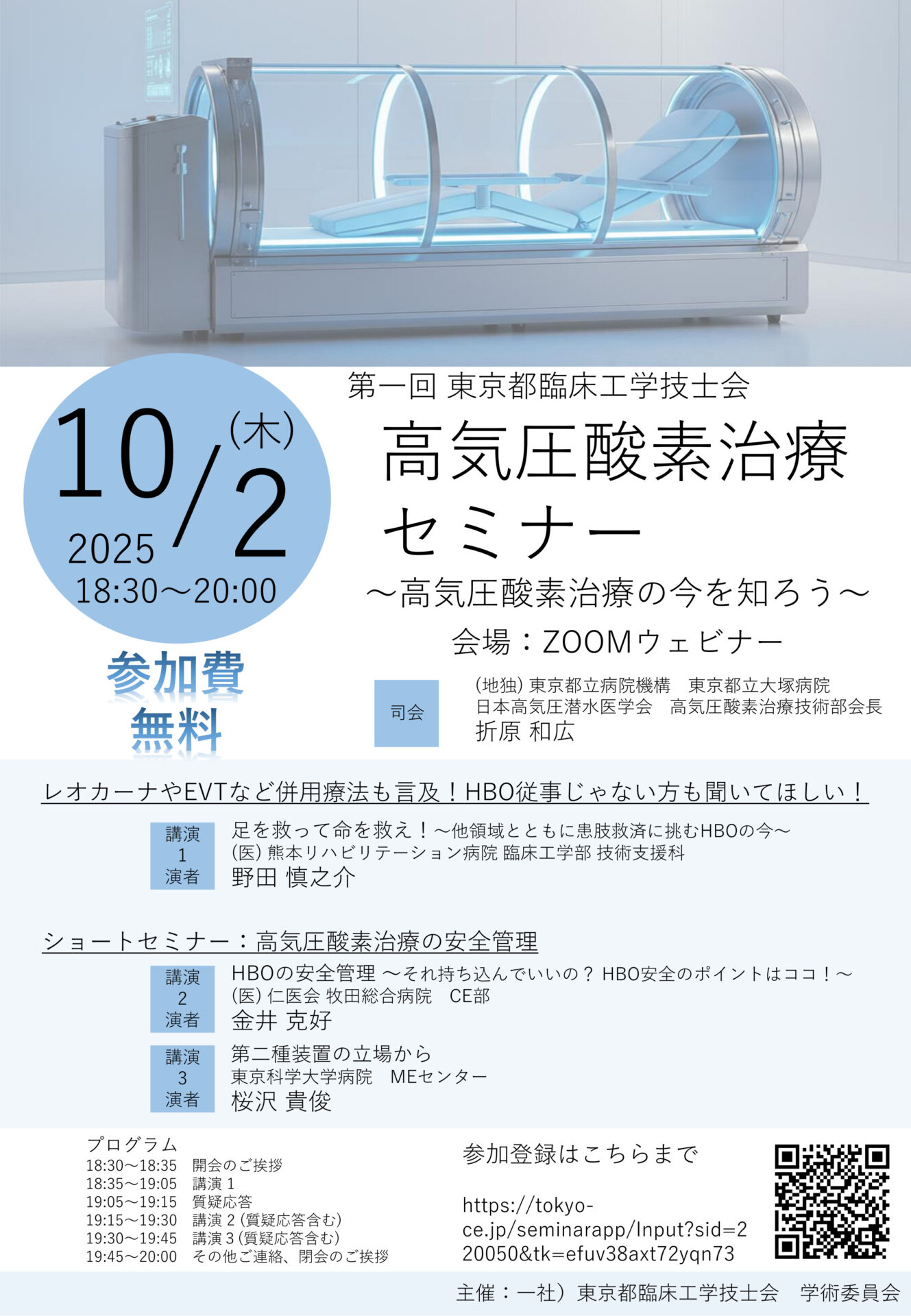 【第1回】高気圧酸素治療セミナー 東京都臨床工学技士会 終了